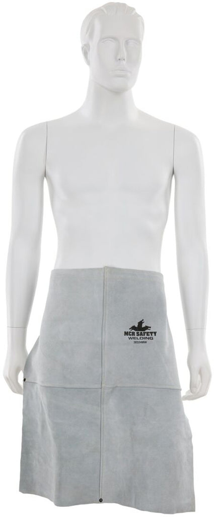 MCR Safety Welding gear provides a variety of welding gloves and welding garments to help keep you safe! The 38324MW is a 24-inch wide x 24-inch long waist apron with an adjustable waist strap for a more personal fit. It is made from heavy, premium A grade gray side-split leather and sewn with DuPont™ Kevlar® thread, providing outstanding protection from heat, sparks, slag, and cuts. If you are looking for the best leather welding aprons, look no further than MCR Safety Welding gear!